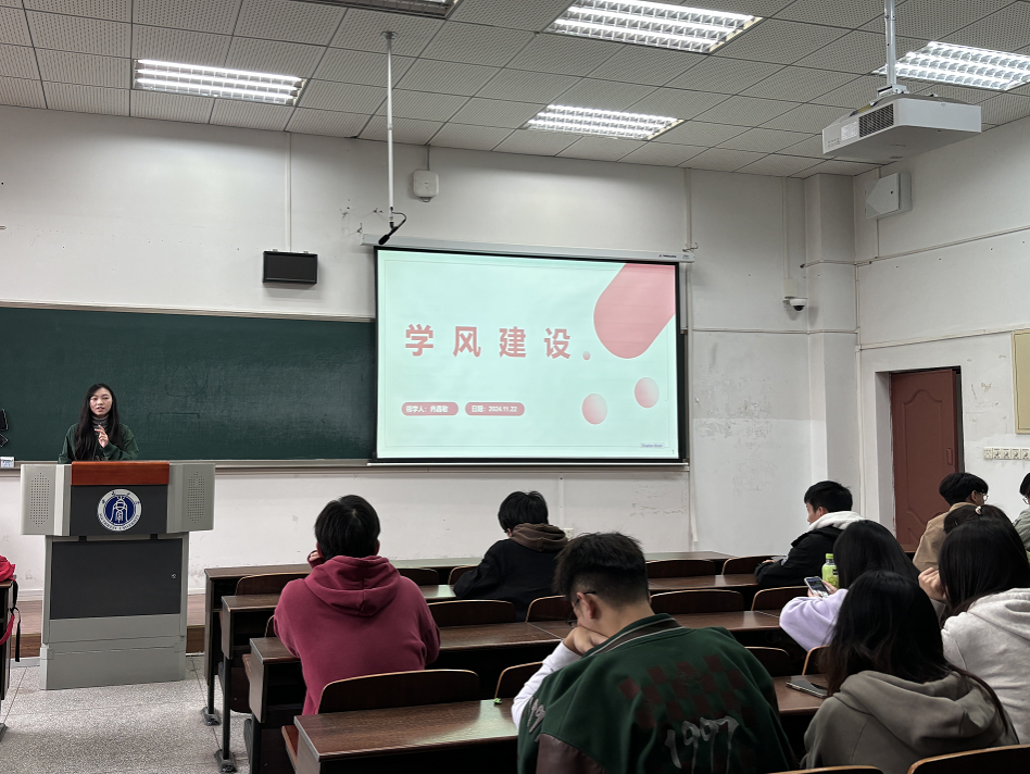 随后,冉晶敏从学术规范与学术不端、近年的学术不端现象、研究生如何保持优良学风等三个方面讲述了学风建设的相关内容。她强调研究生要做到诚信科研,恪守学术道德,遵循学术规范,严格遵守学术纪律。同时,现场同学进行了学术诚信承诺书签字承诺。