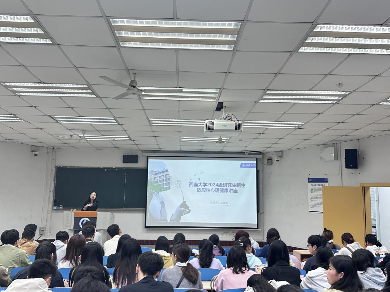讲座伊始,左有霞以“新环境”“新人际关系”为切入点,提出研究生时期在学习与生活上可能发生的心理问题。紧接着,她从人际交往、学业规划、生涯探索、常见心理困扰、心理资源五个方面为新生提供了全面的指导。在此期间,她引用生活中的实际案例,结合生动形象的视频,从多角度、多方面对学习压力、人际交往压力、未来职业规划进行深入讲解。讲座最后,她着重介绍了心理健康教育与服务中心、研究生心灵成长社、“贯通式”心理育人智慧平台等学校心理健康支持服务平台。
