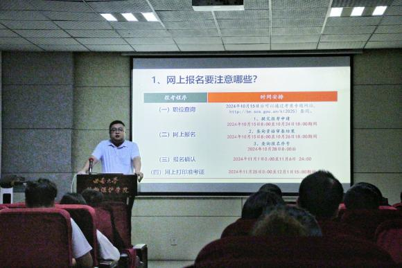 10月15日,PA视讯为积极响应毕业生参加国家公务员考试的备考需求,提升我院学生的应试能力和综合竞争力,在学院401报告厅举办了2024年中央直属机构公务员招考政策解读分享会。本次活动由学院团委书记张周飞老师主持,特邀重庆名师团教育创办人迟鹏程老师作为主讲嘉宾。