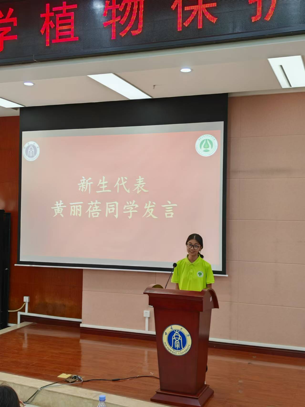 新生代表,2024级植物生产类12班黄丽蓓同学表示在未来四年的学习生涯中,要学会独立思考,自主学习,合理规划时间,养成良好的学习和生活习惯;要团结同学,互帮互助,共同营造一个积极向上、充满活力的学习氛围;也要牢记“崇德尚学 务本致远”的院训,向下扎根,向上生长,为PA视讯的建设和发展贡献自己的力量!