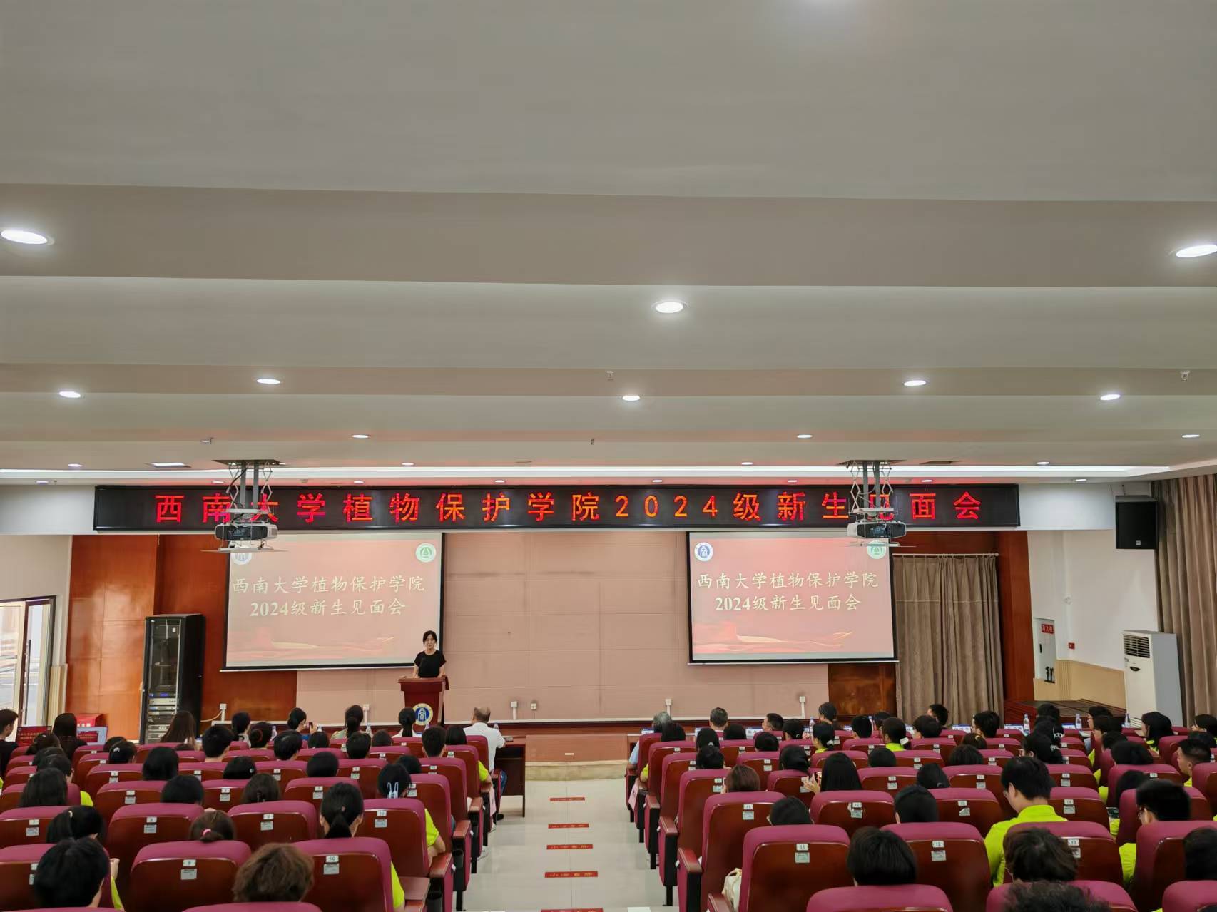9月27日下午,PA视讯2024级新生见面会在农业科学研究生二楼报告厅隆重举行。学院党委书记唐荣发老师、院长刘怀教授、党委副书记陈园园老师、副院长蒋红波教授、张永军教授、车艳丽教授、魏丹丹教授、杨宇衡教授,2024级植产类9班10班班主任田斌年副教授、2024级植产类11班12班班主任蒙力维副教授、2024级植产类13班14班班主任周红副教授、学院教学办公室主任周苑老师、学院党政办公室主任杨晓琴老师、学院党委组织员李园媛老师、学院实验室主任荣霞老师、学院研究生教学秘书吴雨程老师及2024级148名本科新生、136名研究生新生参加了本次见面会。会议由学院党委副书记陈园园主持。