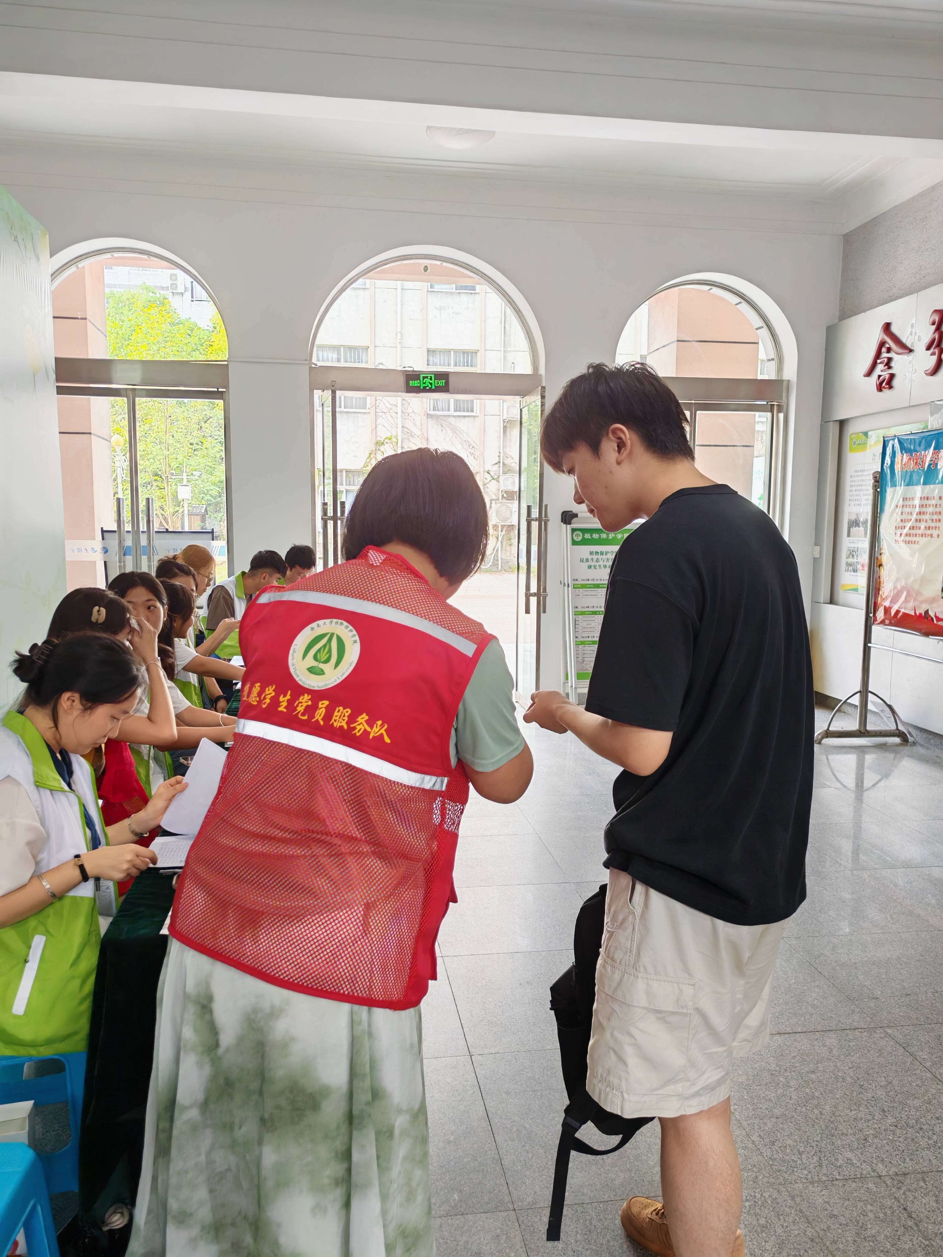 为切实保障迎新工作的落实,学院组织部分老师和2022、2023级全体同学于7日至8日在PA视讯迎新现场进行不间断轮流值班,为新生及其家人提供热心周到的服务。同时,迎新现场摆放富有植保特色的欢迎桁架和合影区,引来许多新生及家长驻足观看和拍摄。迎新同学们分为身份核验组、物品发放组、绿色通道组、档案收集组、机动组等岗位,帮助新生顺利完成迎新报道工作。整个流程在团委书记张周飞老师和团委学生会、昆虫爱好者协会主席团成员的带领下顺利进行,各组分工明确,有条不紊的开展各自的工作。参加迎新的同学们积极帮助新生解决遇到的各种问题,新同学们也感受到学院、院领导、老师、学长和学姐的亲切关怀。