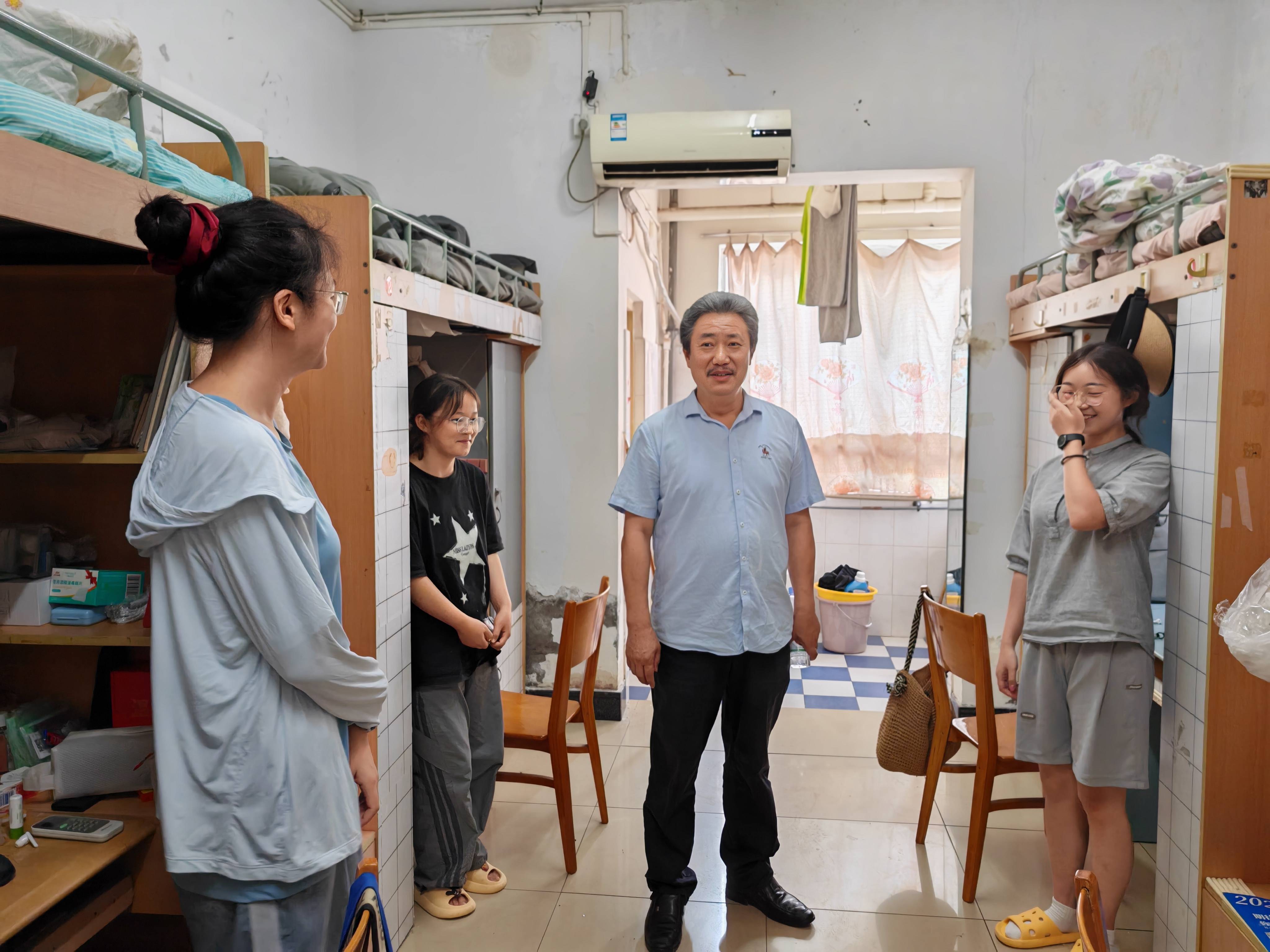 为了解新生住宿和生活情况,帮助新生解决生活和习惯问题,引领新生尽快适应新生活新环境,8日傍晚5点,刘怀院长、唐荣发书记以及新生年级辅导员和班主任走进新生寝室,了解他们进校以来的各项情况。在此过程中,老师们不断嘱咐同学们要和谐相处、互帮互助;要紧抓学习、全面发展。通过走访寝室,新生们深刻感受到了学院领导、老师对自己的关怀,消减了远离家乡的焦虑与不安。