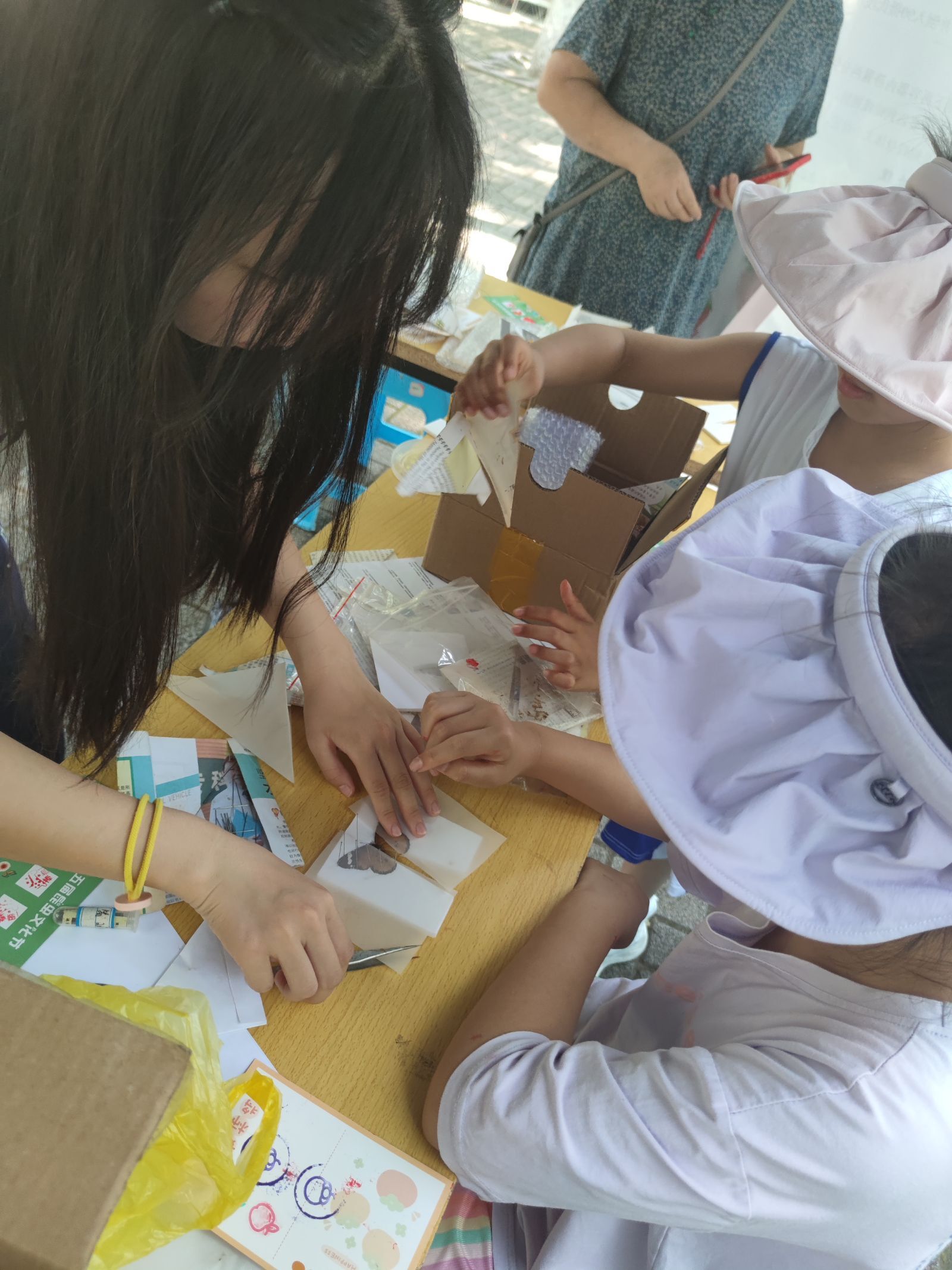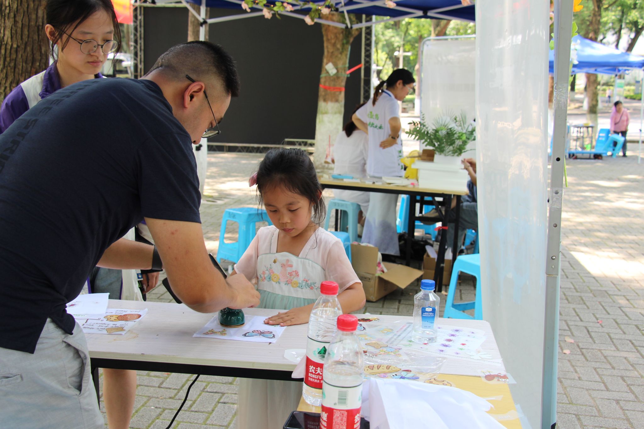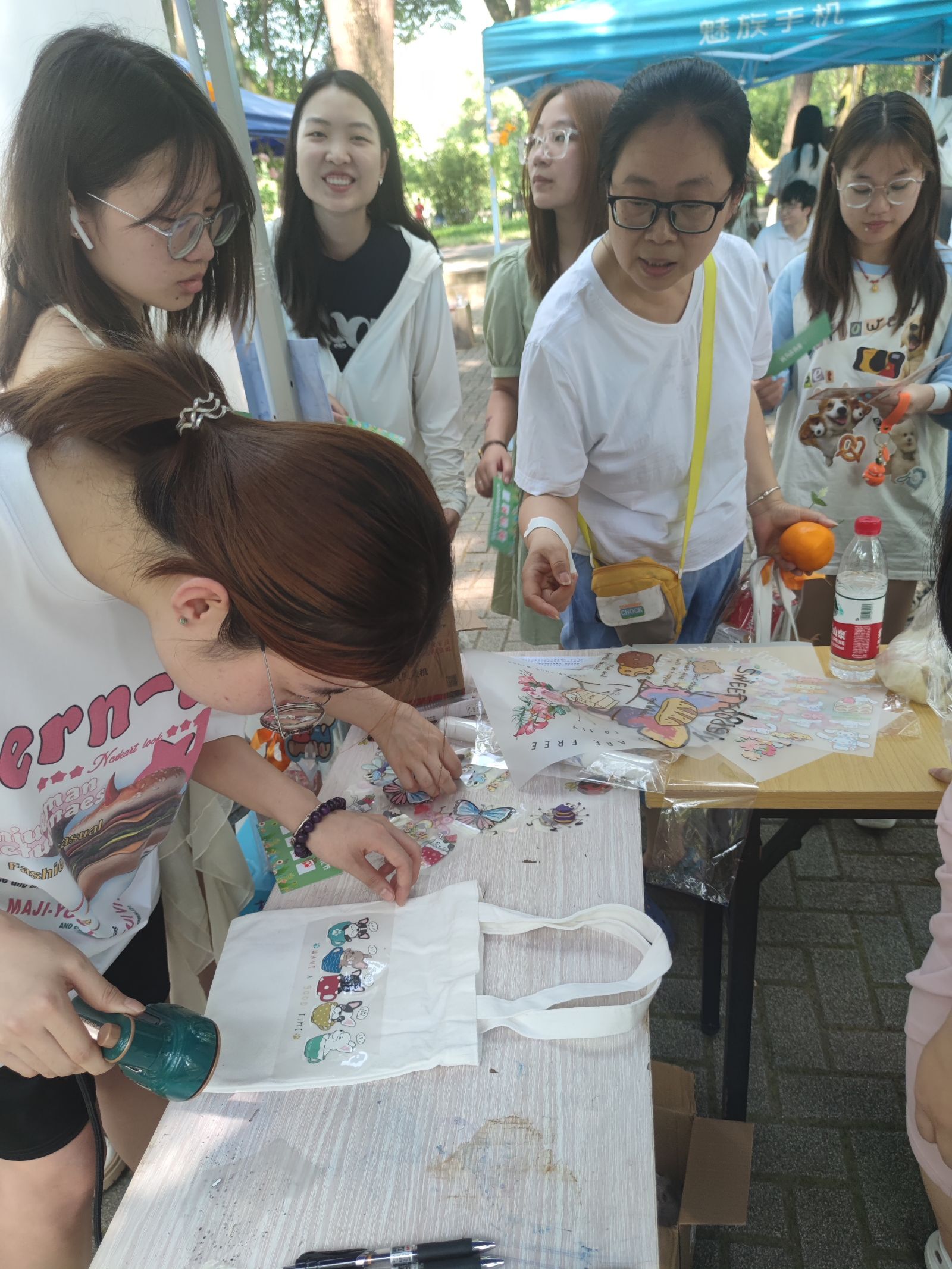早晨8点,日光已盛,在昆协成员的齐心协力下,昆虫文化节摊位顺利搭好,准备迎接今年的第一位客人。此次摊位共分为四个板块,第一个板块为作品展示区,陈列着众多心灵手巧的同学们制作的昆虫艺术品,那些精美的艺术品总是能吸引到来往的同学,引来阵阵赞叹。第二个板块为小游戏区,无论是昆虫知识问答、限时快嘴,还是昆虫拼图、你画我猜,都能让同学们在欢声笑语中了解到有关昆虫的知识。第三个板块为扎染烫画区,在昆协成员的悉心指导下,一张张绘有美丽图案的布画不断产生自同学们的手下。最后一个板块为蝴蝶标本区,那些蝴蝶在同学们的手中仿佛重新活了过来,展开的翅膀在阳光下反射着炫丽的光芒。