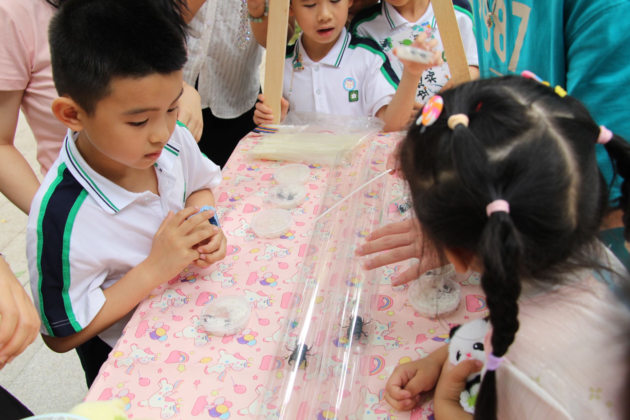 西大附小的小朋友们也来参加了此次活动,工作人员为他们细心科普基本知识,引导他们参加各种有趣的活动,小同学们在玩耍中学到了许多跟昆虫有关的知识,也对昆虫有了更加浓厚的兴趣。