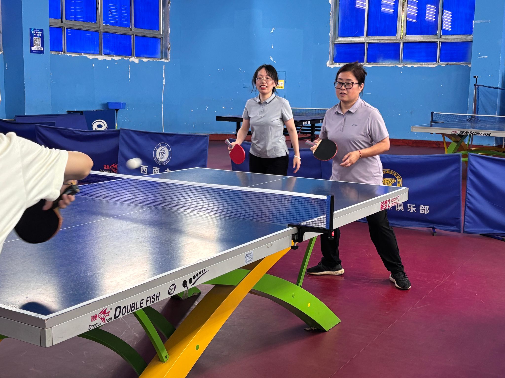 活动中,师生们根据兴趣爱好参与羽毛球和乒乓球项目。师生们自觉遵守竞技规则,在羽毛球和乒乓球场上全力以赴,展现出扎实的球技和昂扬的精神风貌。