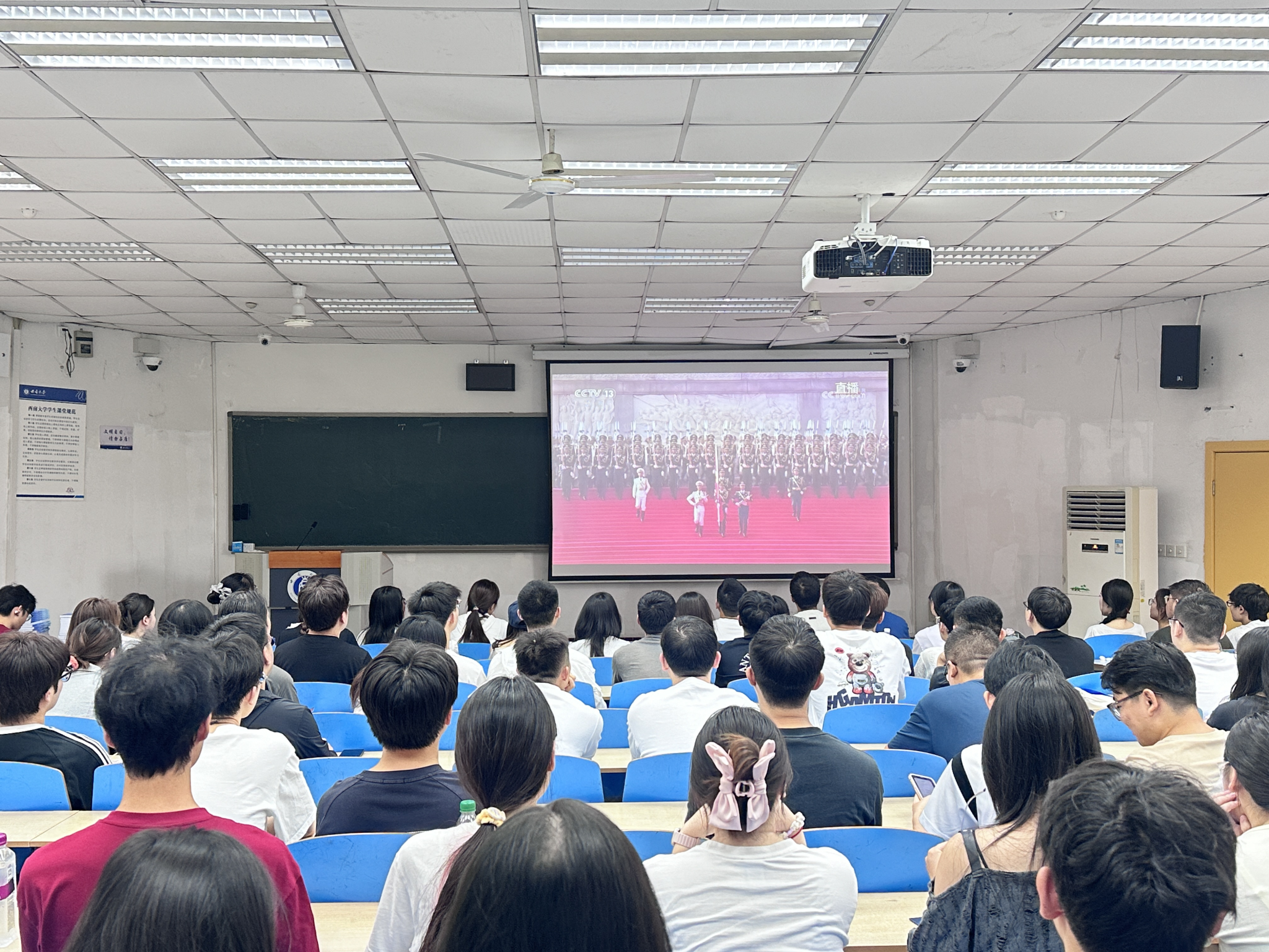 学院组织2025级研究生新生观看了纪念中国人民抗日战争暨世界反法西斯战争胜利80周年大会。此次观礼活动,不仅让新生们深刻感悟到民族精神的力量,更激发了他们以科研报国、服务国家农业发展的责任感与使命感。