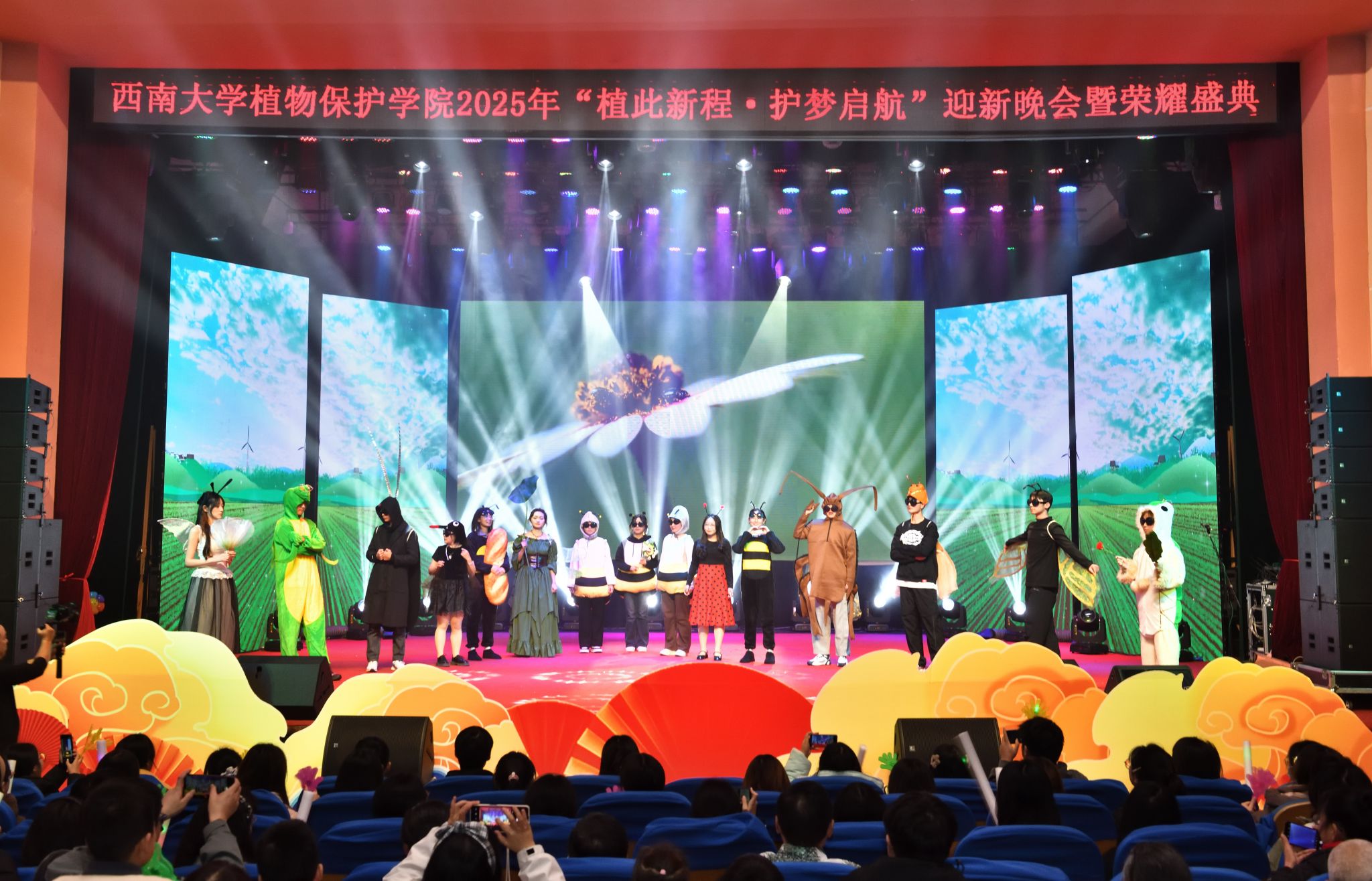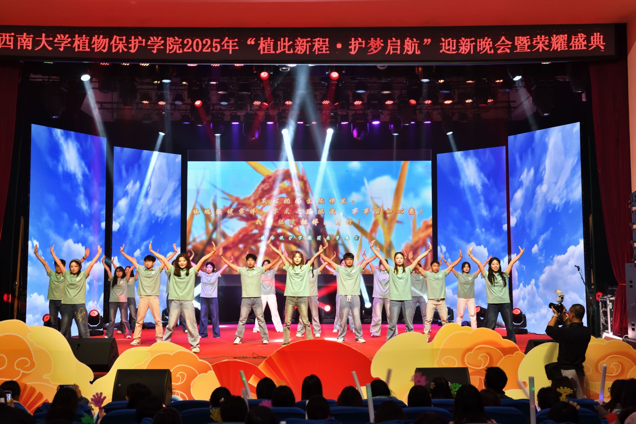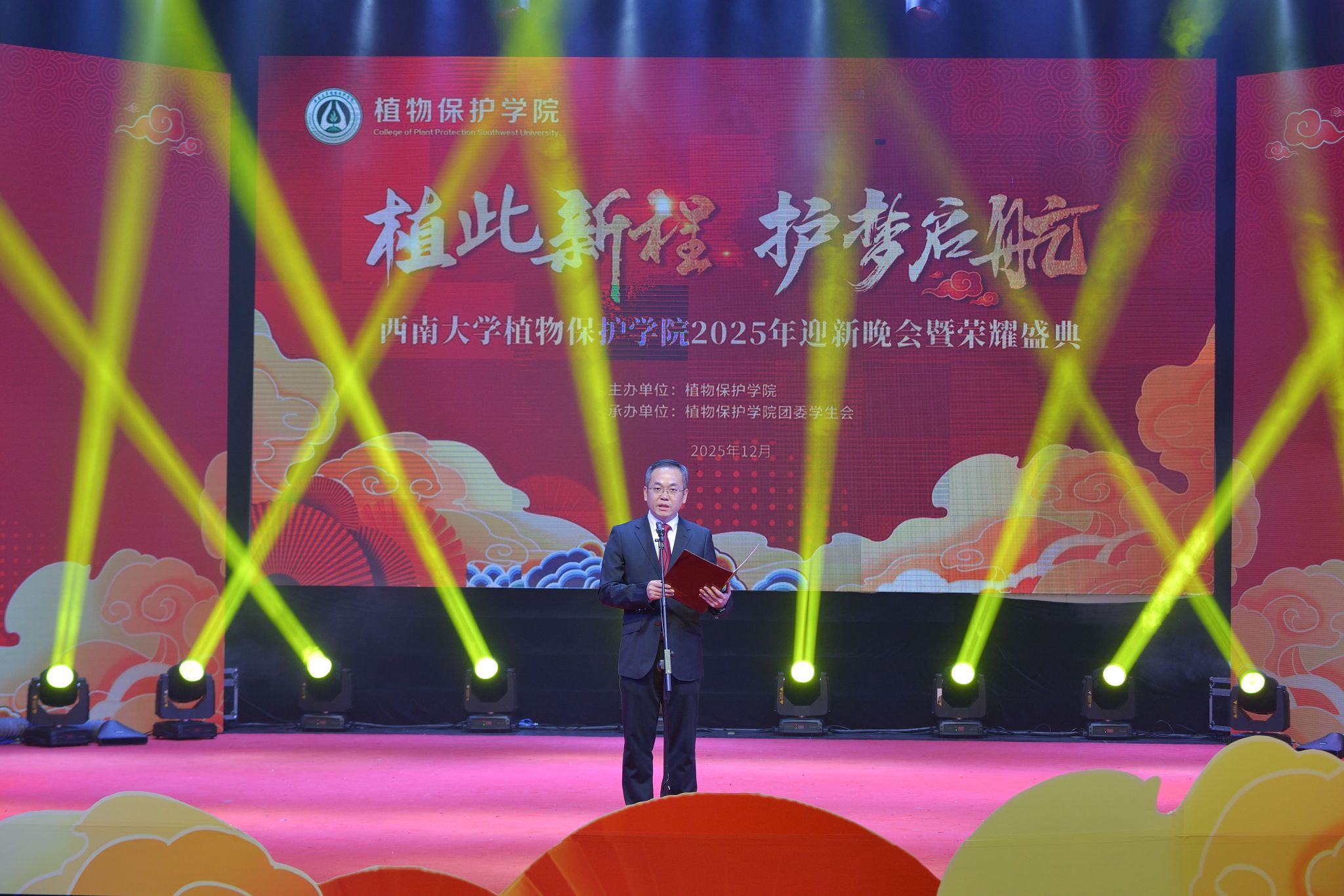 整场晚会既是一堂别开生面的 “大思政课”,也是一次生动的专业教育课。从天真孩童到资深教授,从新生代表到获奖楷模,每一个身影都勾勒出学院立德树人、薪火相传的生动画卷。新程已启,梦想同行。愿2025级植保新生承载“崇德尚学、务本致远”的院训精神,在学院的悉心培育与同行者的温暖陪伴下,深植梦想、守护希望,在建设农业强国、推动乡村全面振兴的伟大征程中,绽放属于自己的绚烂“植”慧光芒!