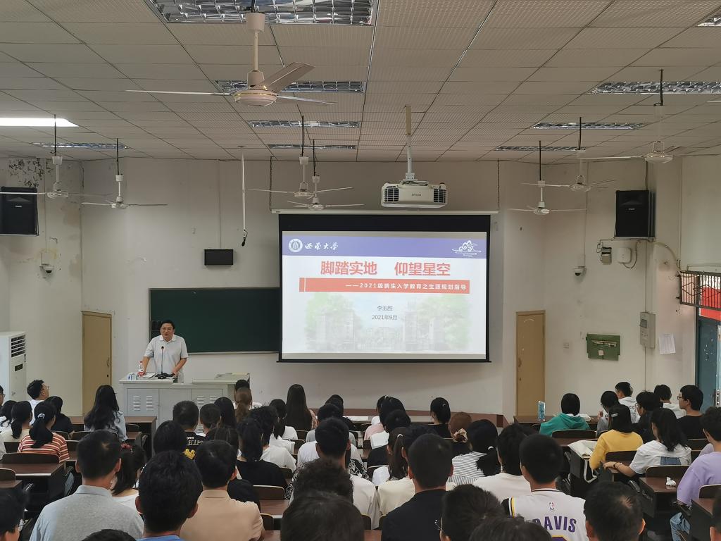 PA视讯党委副书记李玉胜老师做主题为“脚踏实地·仰望星空”的大学生职业生涯规划专题讲座,引导新生正确处理专业学习、人际关系、情感交流、社会工作的关系问题,帮助新生制定具有可行性的阶段性目标和可达成的总体性目标。