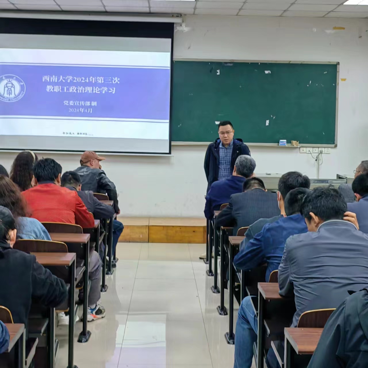 2024年4月7日下午2:30,在学院322会议室召开2024年第三次教职工政治理论学习,全院教职工参会,会议由党委书记唐荣发主持。