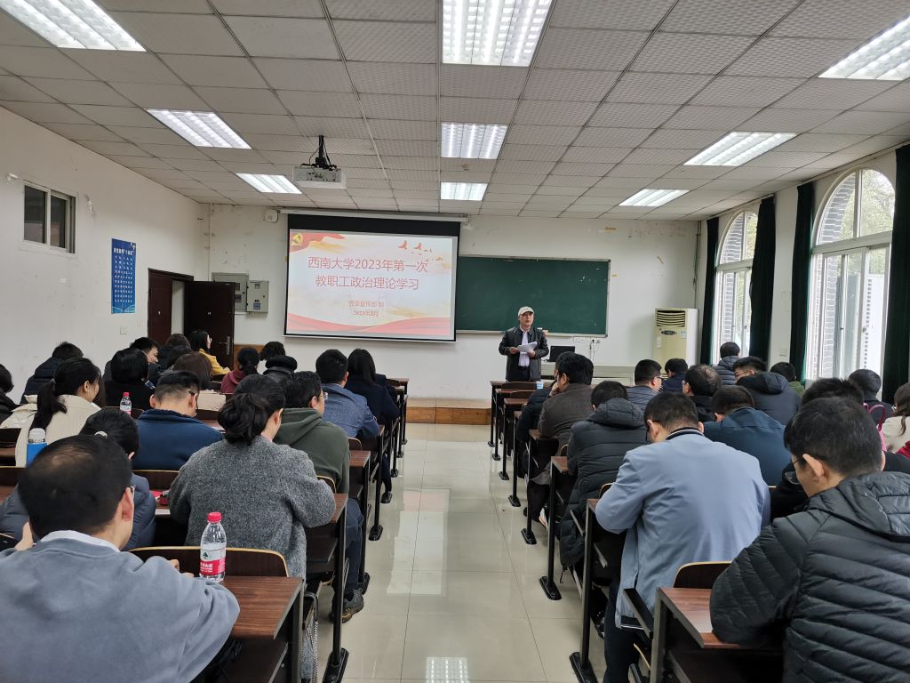 2023年3月3日下午2:30-4:00,学院在34-322举行2023年第一次教职工政治理论学习,会议由党委书记唐荣发主持。