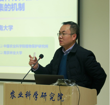 项目负责人蒋红波教授从该项目整体的研究背景与发展趋势,研究内容与研究目标,任务分解和进度安排,研究团队和工作进展,预期效益与风险和组织管理与预算六个方面详细介绍了该项目的设计与后期执行计划。重点介绍了项目组将围绕橘小实蝇、番茄潜叶蛾、美国白蛾、番茄斑萎病毒和长芒苋等五种代表性的重大/新发入侵生物,重点研究其致害基因遗传变异及致害机制、大规模群体形成与维持机理和靶向关键节点的致害阻断技术。他对项目上级主管部门和学校领导的支持表示衷心感谢,并表示项目组成员将用心、用情、用力,高质量地完成研究任务。