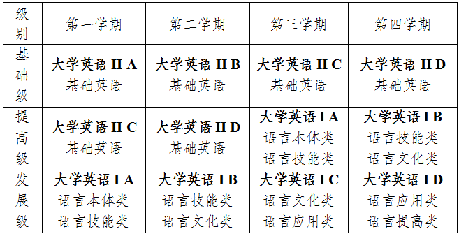 学生在教务系统选课时,可查看所在级别的可选课程(如表2)。