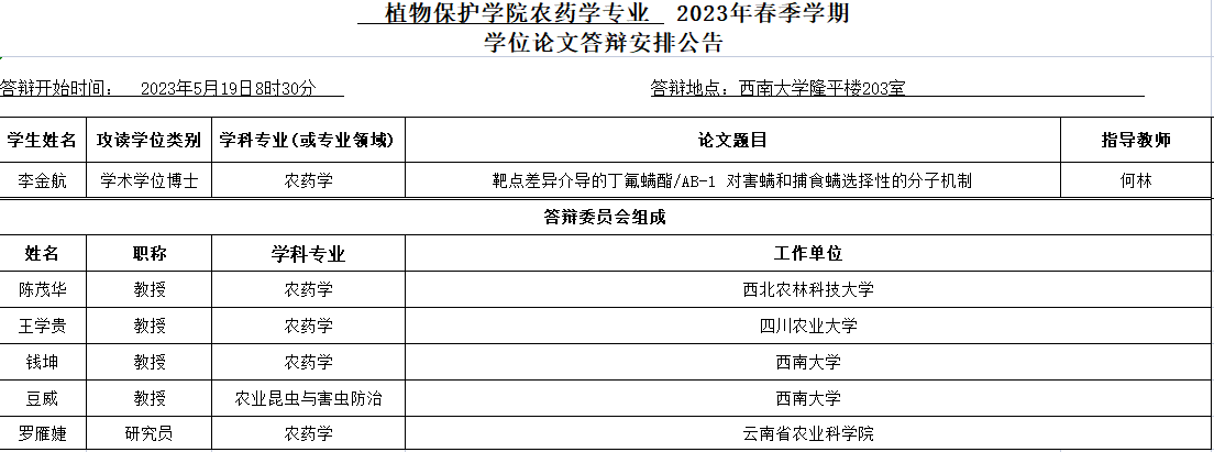上一条: PA视讯农药学专业2023年春季学期学位论文答辩安排公告(硕士)